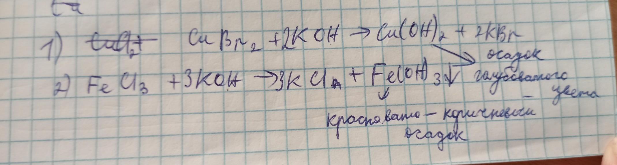 даны растворы солей содержащие следующие катионы Cu2+ fe3+ при добавление гидроксида калия к указанным растворам образовались нерастворимые соединения запишите цвет и формулы образовавшихся осадков