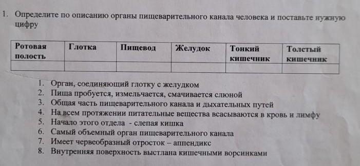 Определите По описанию органы пищеварительного канала человека и поставьте нужную цифру