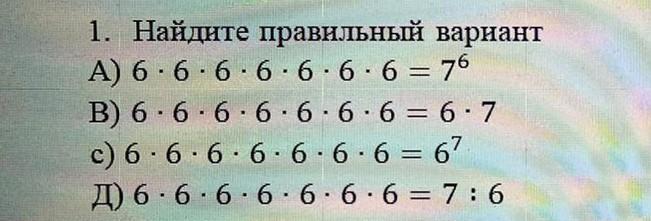 В варианте С семь шестёрок, то есть 6 в седьмой степени.