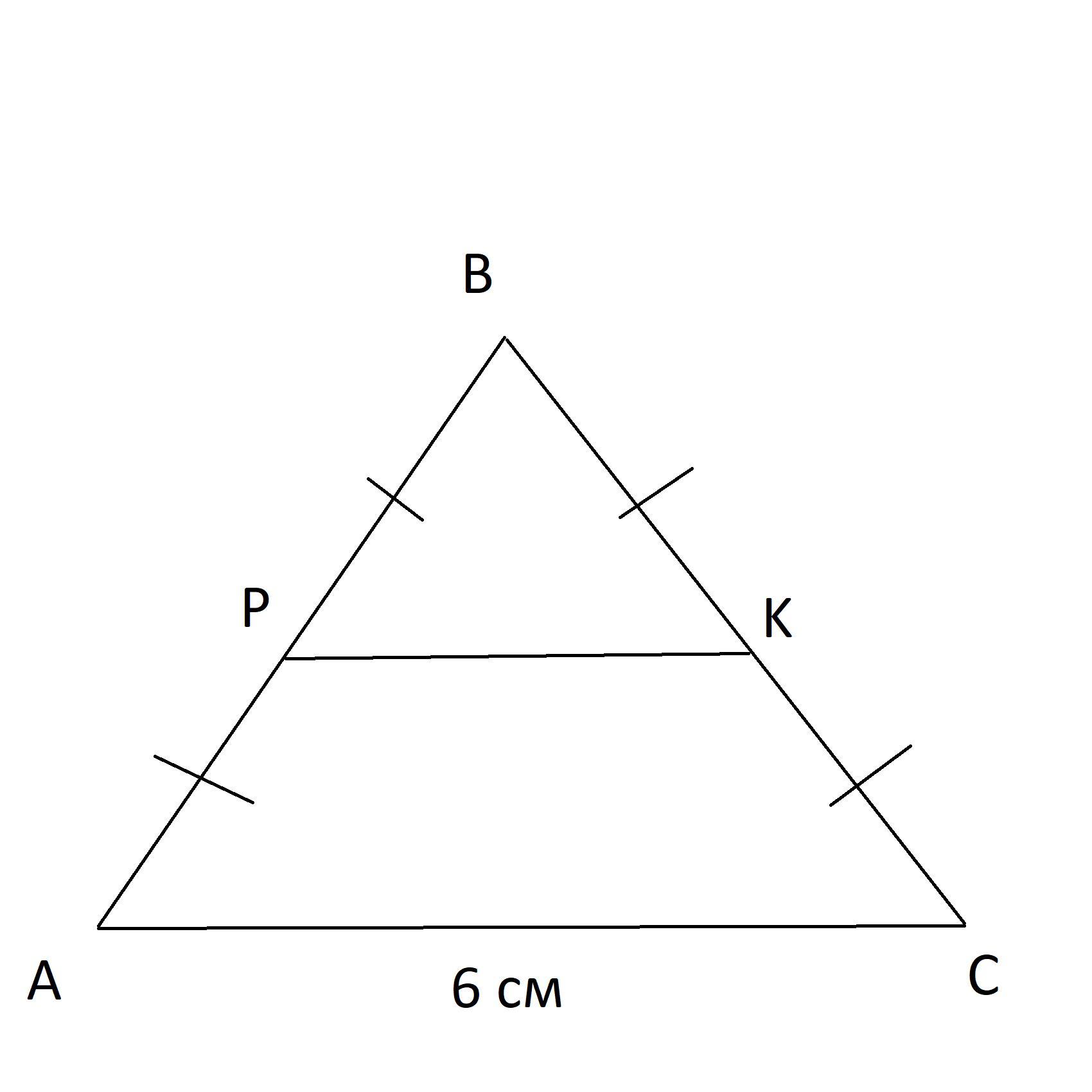 Дано: Треугольник ABC, P = 24 см, AC = 6 см, PK - средняя линия, AB = BC