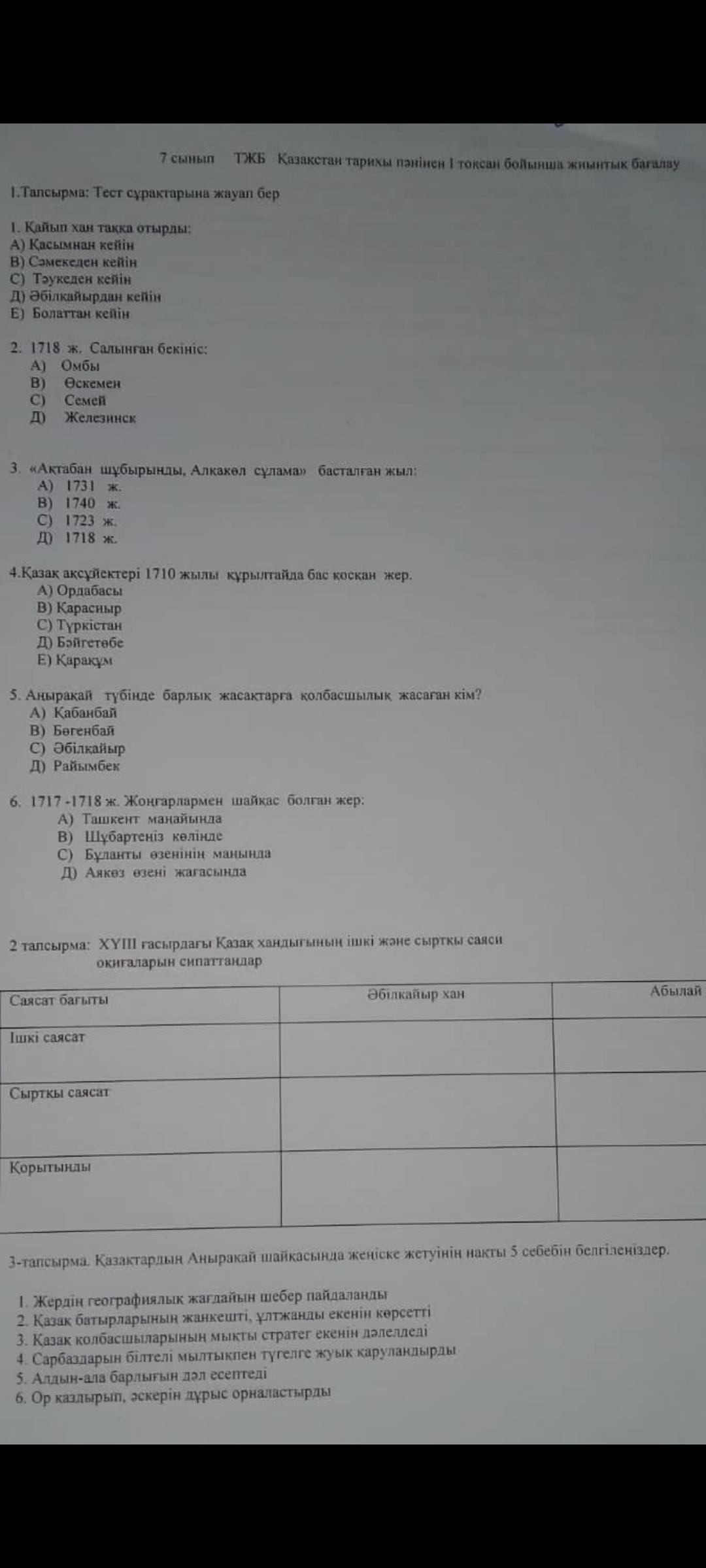 18 ғасырдың бірінші ширегіндегі қазақ хандығының ішкі және сыртқы саяси окигаларын сипаттандар