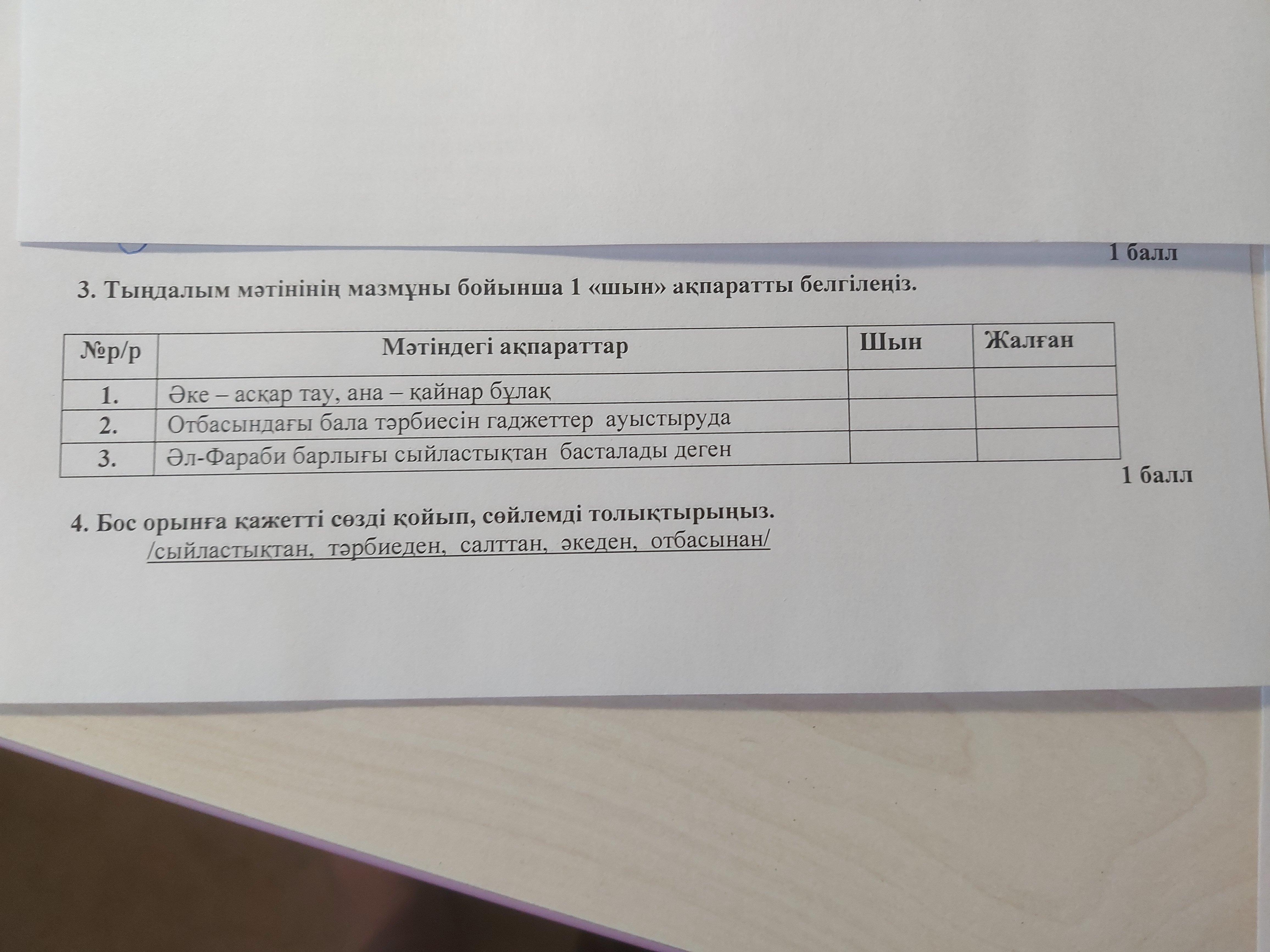 3. Тапсырма 1-сойлем аке аскар тау деген «шын» акпарат