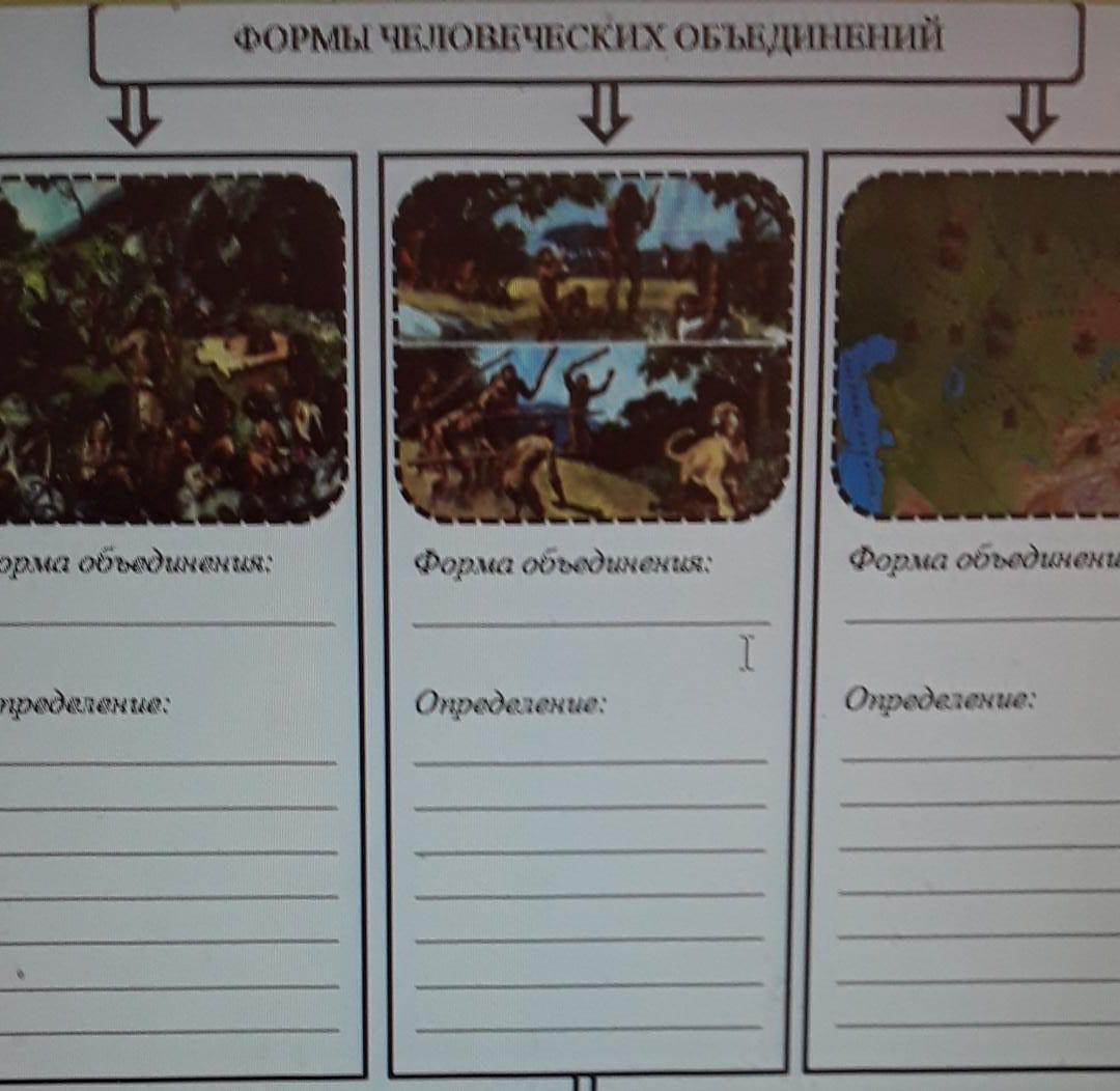 Задание 1. По изображениям определите формы человеческих объединений, дайте определение каждой формы, выявите общую характеристику для всех форм.