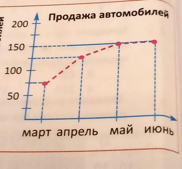 Исходя из графика видим, что апреле было продано 125 автомобилей, а в мае и июне 150. Значит в мае и июне продали на 150-125=25 автомобилей больше. А за два месяца май и июнь - в сумме 25+25=50. А так как разница цен от проодажи адного авто 800 манат, то увеличение дохода с апреля по июнь составляет 50*800=40000 манатов.