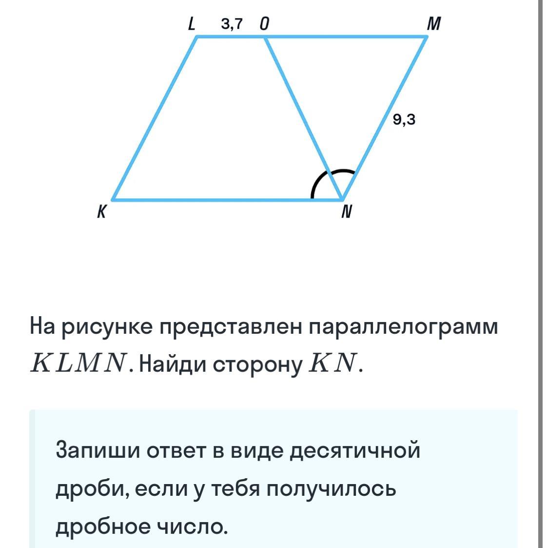 КN=LM=9,3+3,7=13 ед