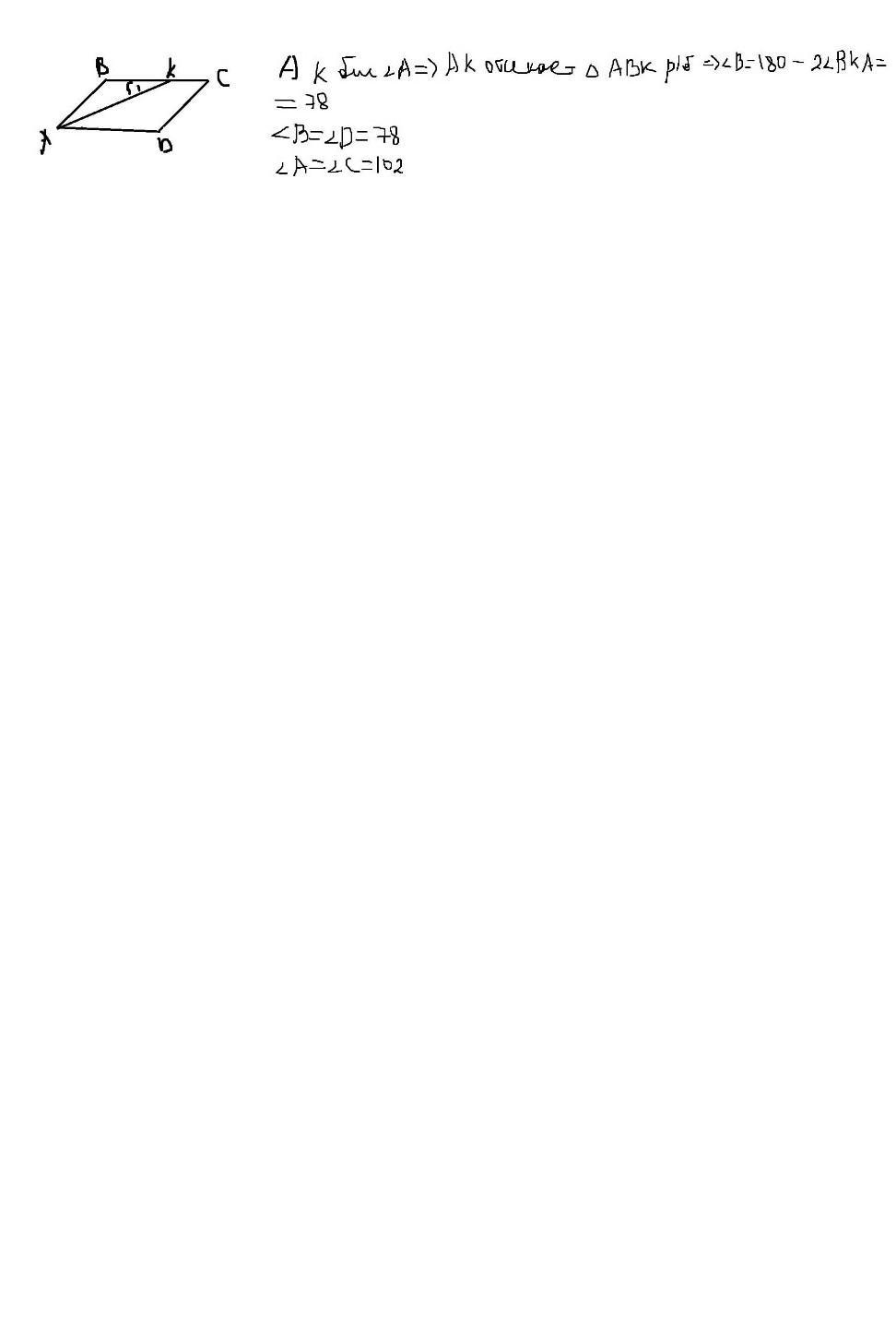 2. Вычислите углы параллелограмма, если биссектриса одного из углов, пересекаясь с его стороной, образует с ней угол, равный 51°.