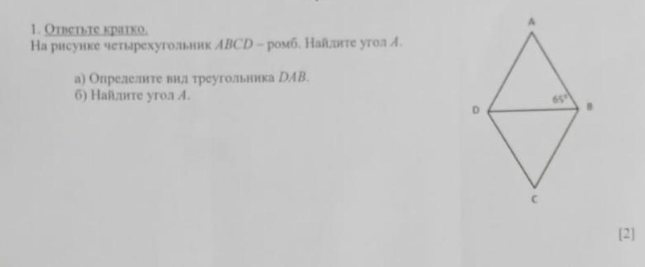 Решение: треугольник АDB равнобедренный, тк АBCD ромб,а у ромба все стороны равны