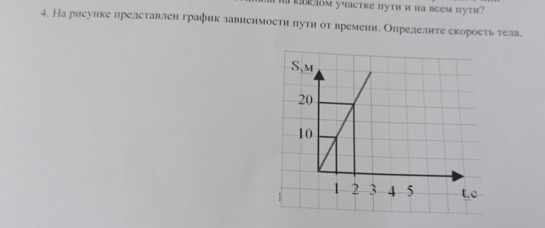 ДАМ 60 БАЛЛОВ4. На рисунке представлен график зависимости пути от времени. Определите скорость тела. S,M 20 10 1 2 3 4 5 t.c 1
