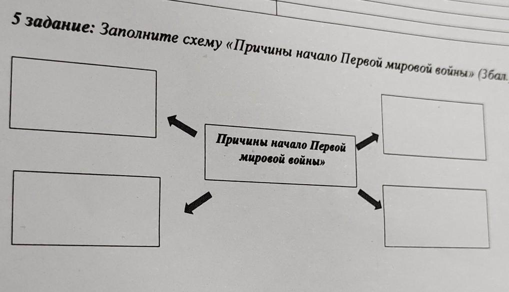 5 задание: Заполните схему «Причины начало Переой мировой войны» (Збал. ) Причины начало Первой мировой войны»