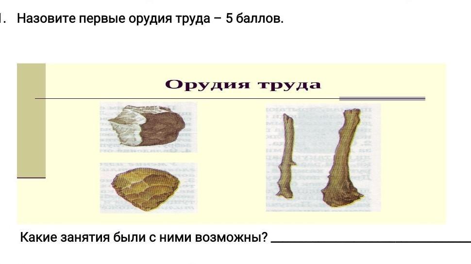 Ответ:добывать пищу, для защиты от диких животных, для охоты и копания земли, охоты и войны,