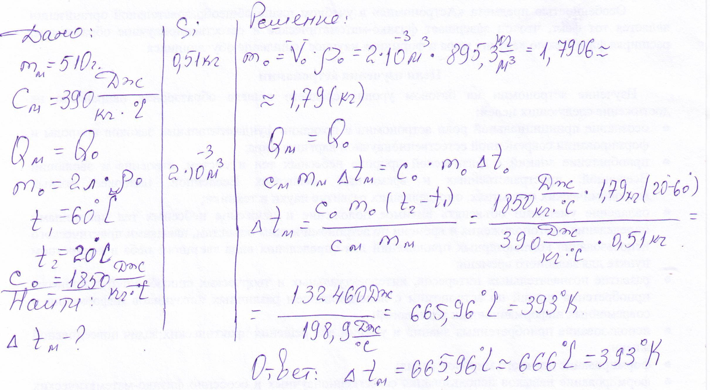 На скільки градусів можна нагріти 510 г міді, якщо використати ту саму кількість теплоти, яка виді ляється під час охолодження 2 л олії вiд 60 до 20 °С?