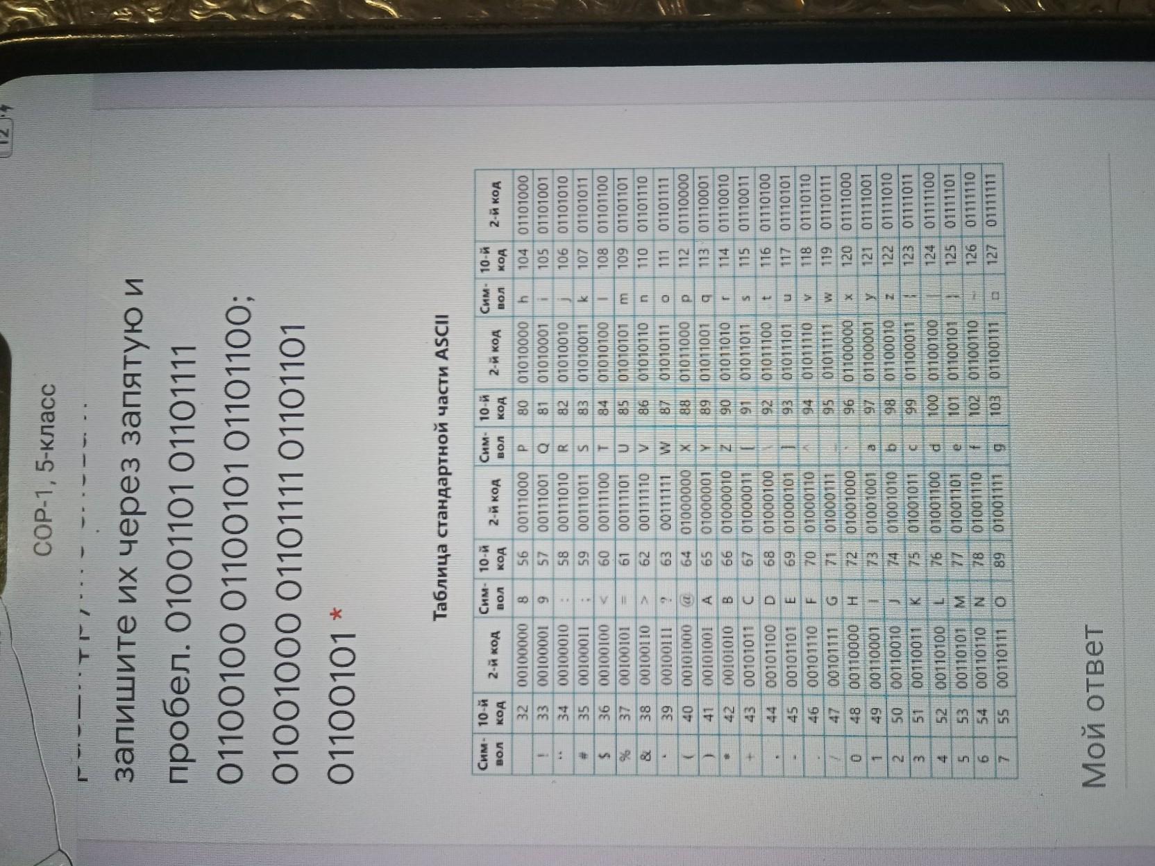 Используя код ASCII, расшифруйте слова и запишите их через запятую и пробел . 01001101 01101111 01100100 01100101 01101100 ; 01001000 01101111 01101101 01100101