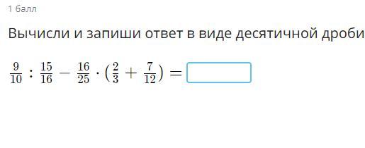 9/10:15/16-16/25*(2/3+7/12)=24/25-16/25*1 1/4=24/25-4/5=4/25=0,16