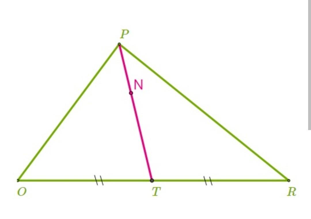 3. Так как в треугольнике ONR отрезок NT проведён от вершины (?) к точке, делящей сторону OR пополам, то он является (?) этого треугольника.