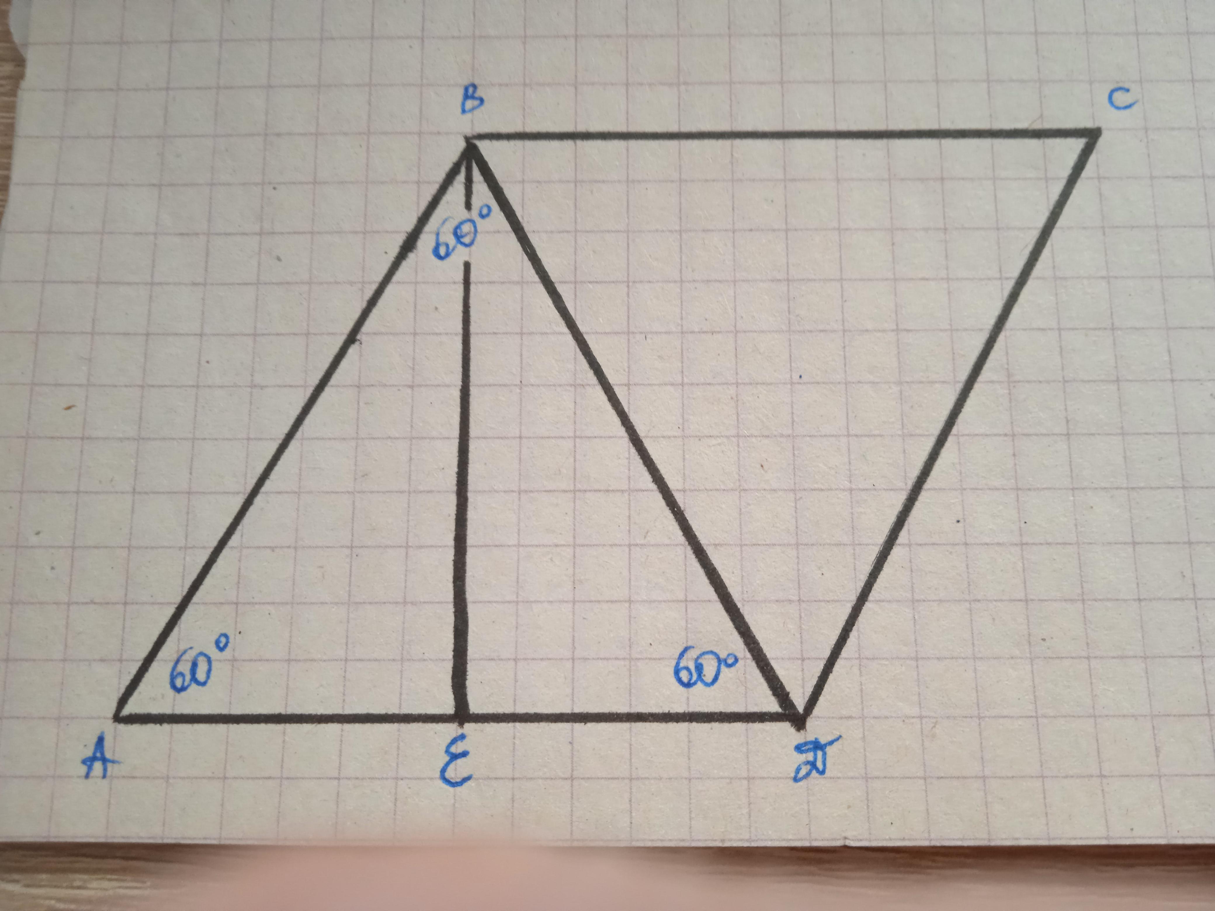 ∠А=∠D=60°, ∠ABD=180-60-60=60°, значит, ΔАВD - равносторонний.