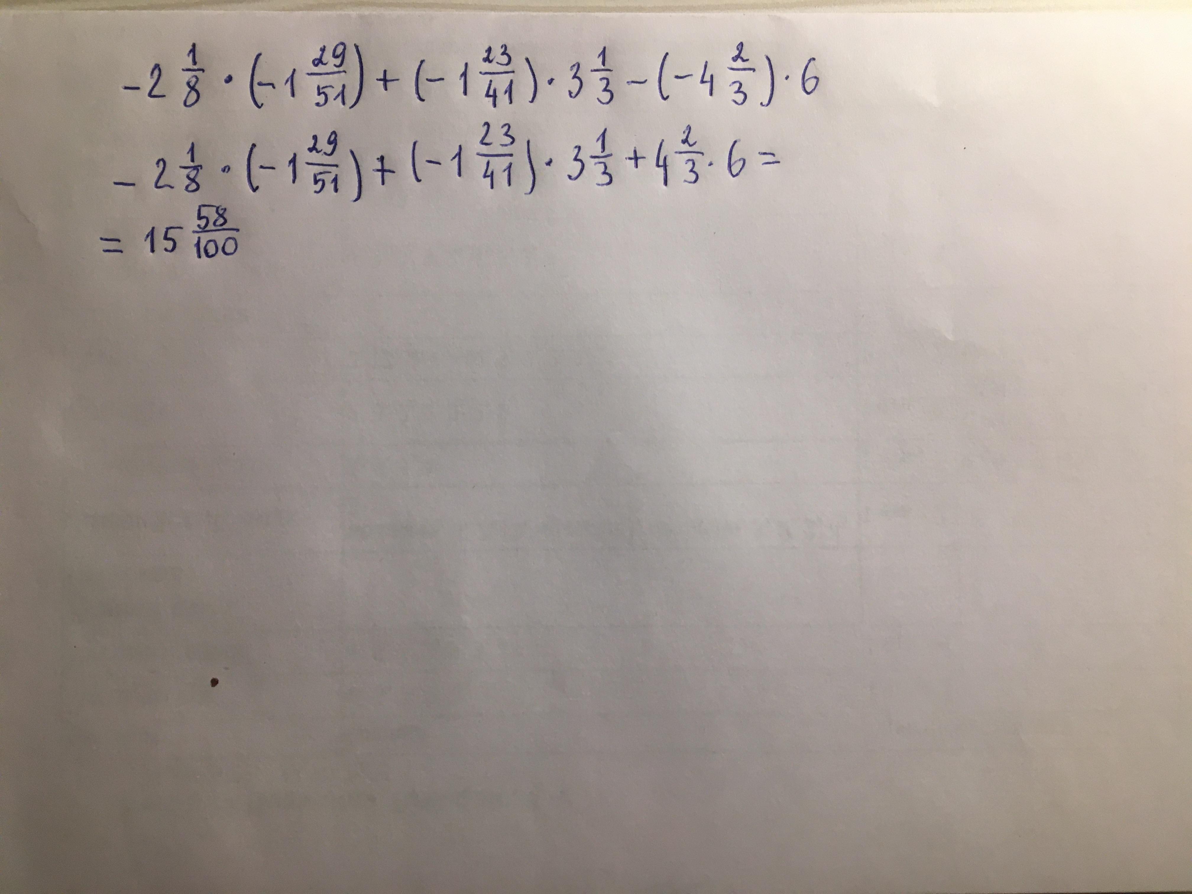 найдите значение выражения: (-2 1/8) * (-1 29/51)+(-1 23/41)*3 1/3-(-4 2/3)*6