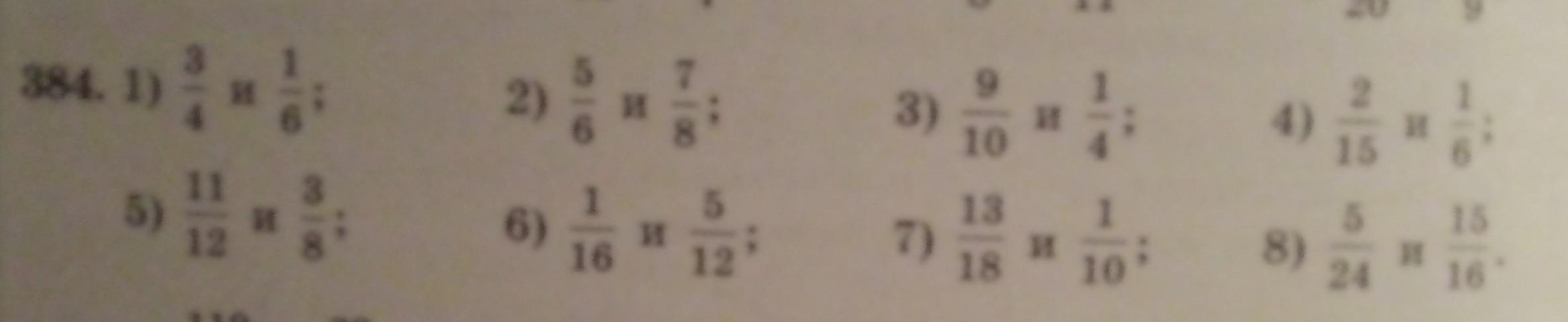384 . 1) 3/4 i 1/6 ; 2) 5/6 i 7/8 ; 3) 9/10 i 1/4 ;