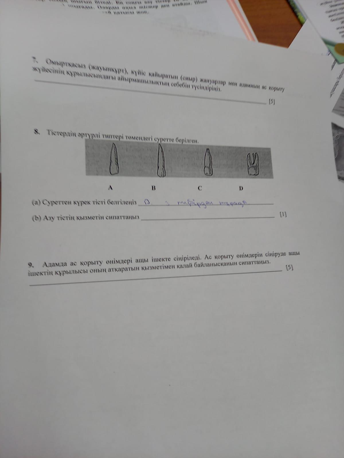 8.(b) Азу тістің қызметі ас шайнау үшін және жақ сүйегі жылжып кетпей орнында ұстап тұруы үшін. Және де ол сөйлеу процесінде қатысады.