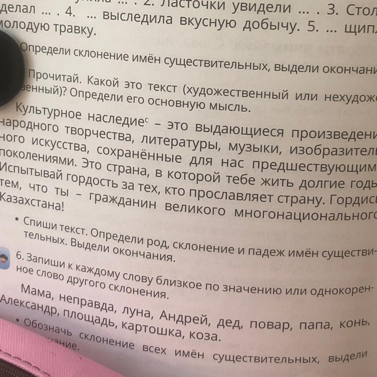 • Спиши текст. Определи род, склонение и падеж имён существи-