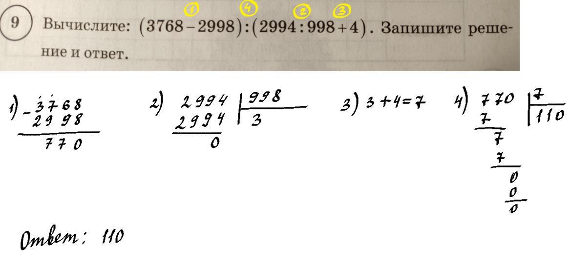 9) 770 : (3+4) = 110