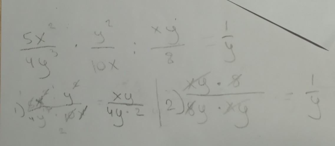 1) 5x² × y²/4y³ × 10x = xy/4y × 2 (то есть 8y)
