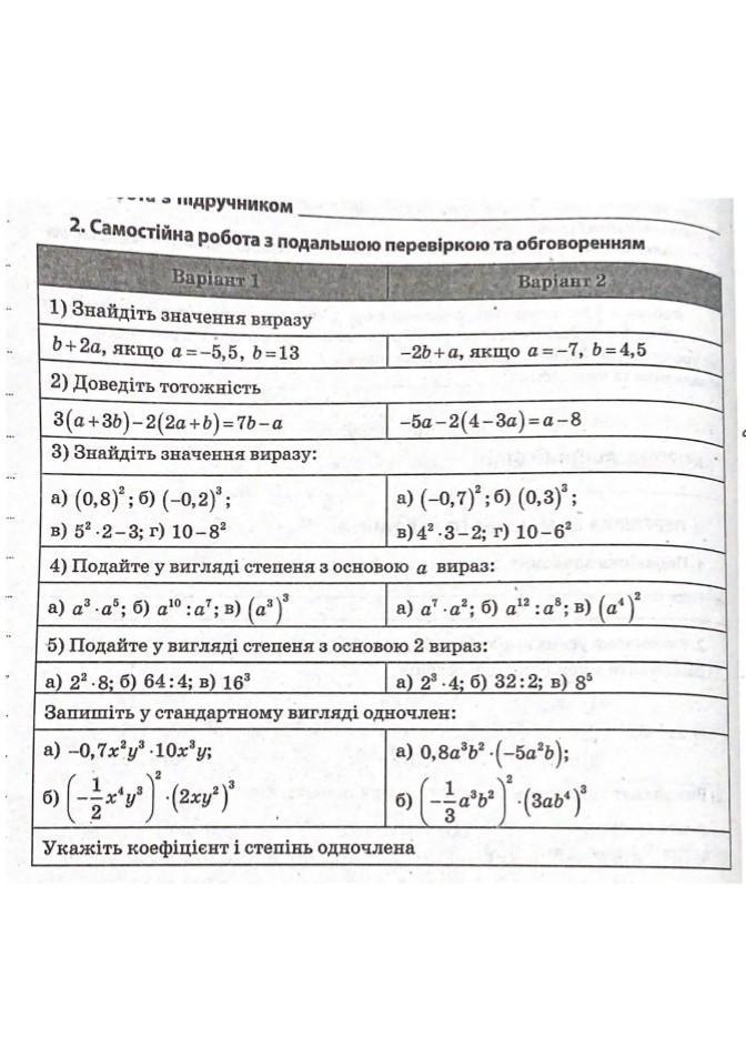 6. 1) 0.8 a^3 b^2 *(-0,5a^2b) = -0,4 a^5 b^4