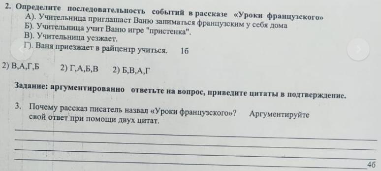 2. Определите последовательность событий в рассказе «Уроки французского»