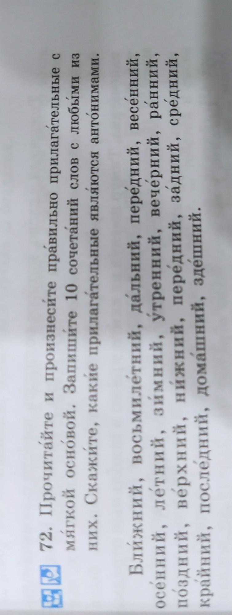прочитайте произнесите правильный прилагательные с мягким слов запишите сочетания слов с любыми из них скажите какие прилагательные являются антонимами