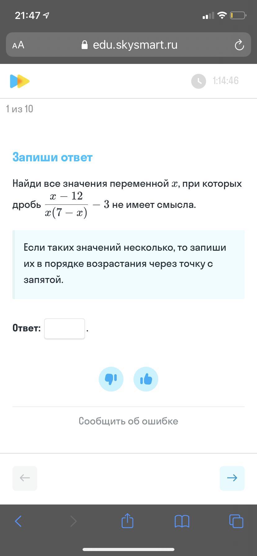 При Х=0 и Х=7 знаменатель будет 0, значит дробь не имеет смысла.