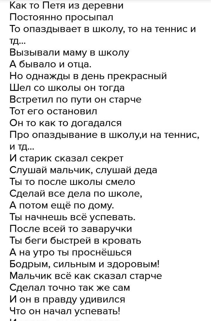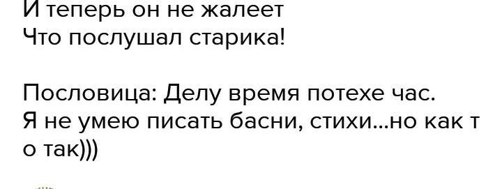 Ответ:Самым богатым в лесу был крот. И шуба у него была лучше, чем у других. И кладовки забиты до отказа. Да ещё по случаю доставили ему хорошую провизию. Решил крот: «Раз у меня богатства много, то и ума больше всех». И хотя крот нигде не учился, стал он в лесу наставлять всех. Поначалу звери прислушивались к его замечаниям, но выходило только хуже. Раз крот медведю сказал: «Ты, косолапый, летом в лесу хозяин, а зимой – заяц. Заяц не спит — верховодит». Рассвирепел медведь, решил не впадать в спячку. Да только хуже от этого вышло, заболел медведь. «Зря я крота послушал, неумный он», — поделился медведь с совой. На что сова ответила: «Случайно можно стать обладателем любого богатства, но только не ума».