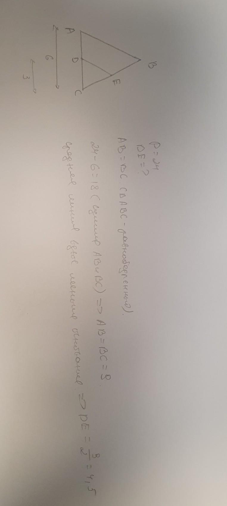 Найдите среднюю линию равнобедренного треугольника,паралельной боковой стороне,основание равно 6 см, а его периметр равен 24см