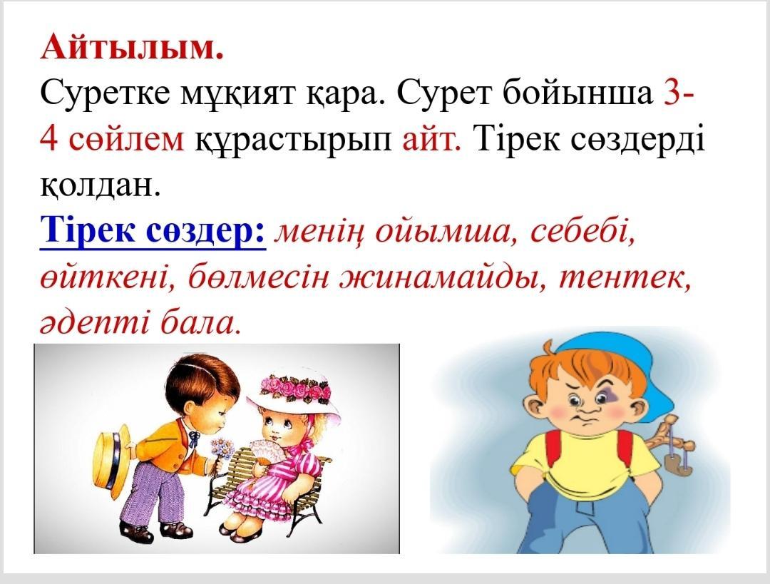Помогите пожалуйста ну дно составить по картинкам текст не менее 3х-4х предложений используя тірек сөздер(опорные слова)