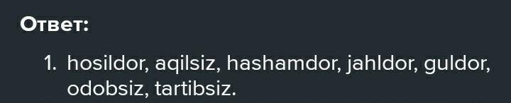 Berilgan sifatlarni qo'shimchalarning qo'shilishi o'rniga ko'ra 2 guruhga ajratib yozing. 9-mashq