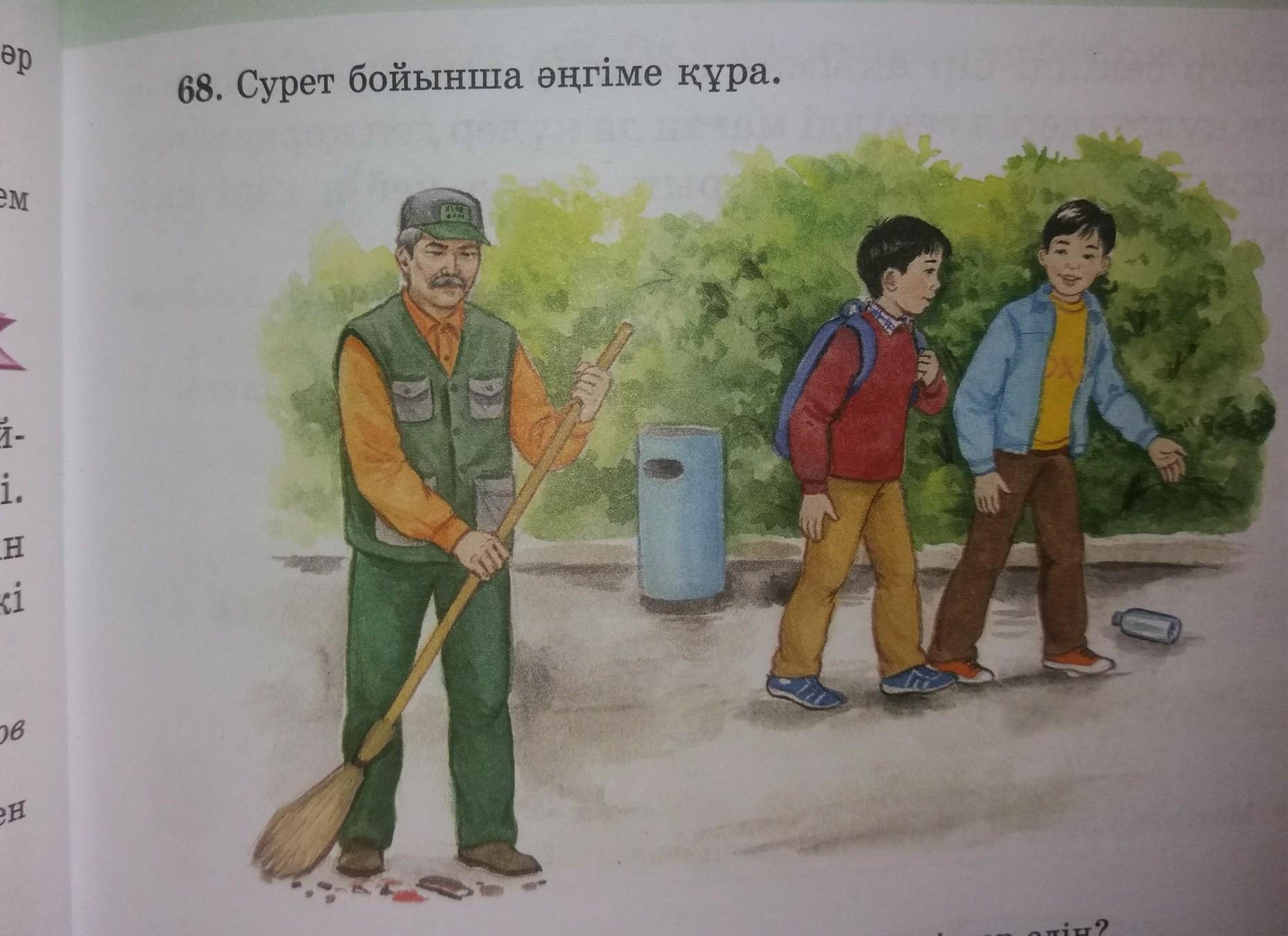 Бір күні мен саябақта келе жатқанда бір қарт кісіні көрдім. Ол кісі саябақты жинап жүр. Ал басқа бала қоқыс лақтырып табиғатты ластап жүр. Біз қарт ата көмектестік. Ол ата біз алғысын беріп батасын алып кеттік.