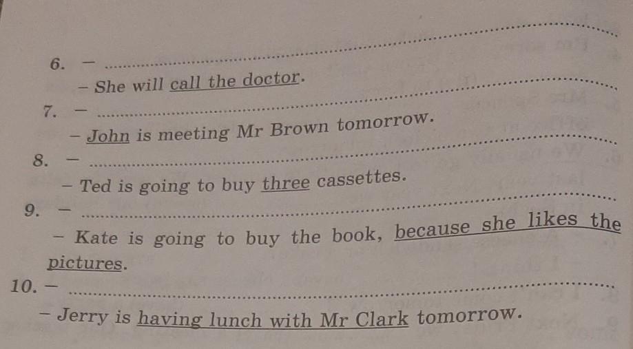 Ask a question about the information underlined in each of the following sentences using