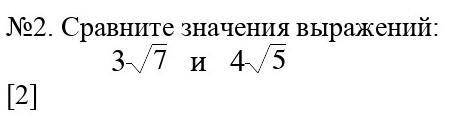 3 \sqrt{7}  > 4 \sqrt{5}  \\  \sqrt{3 {}^{2} \times 7 }  =  \sqrt{63}  \\  \sqrt{4 {}^{2}  \times 5}  =  \sqrt{80}