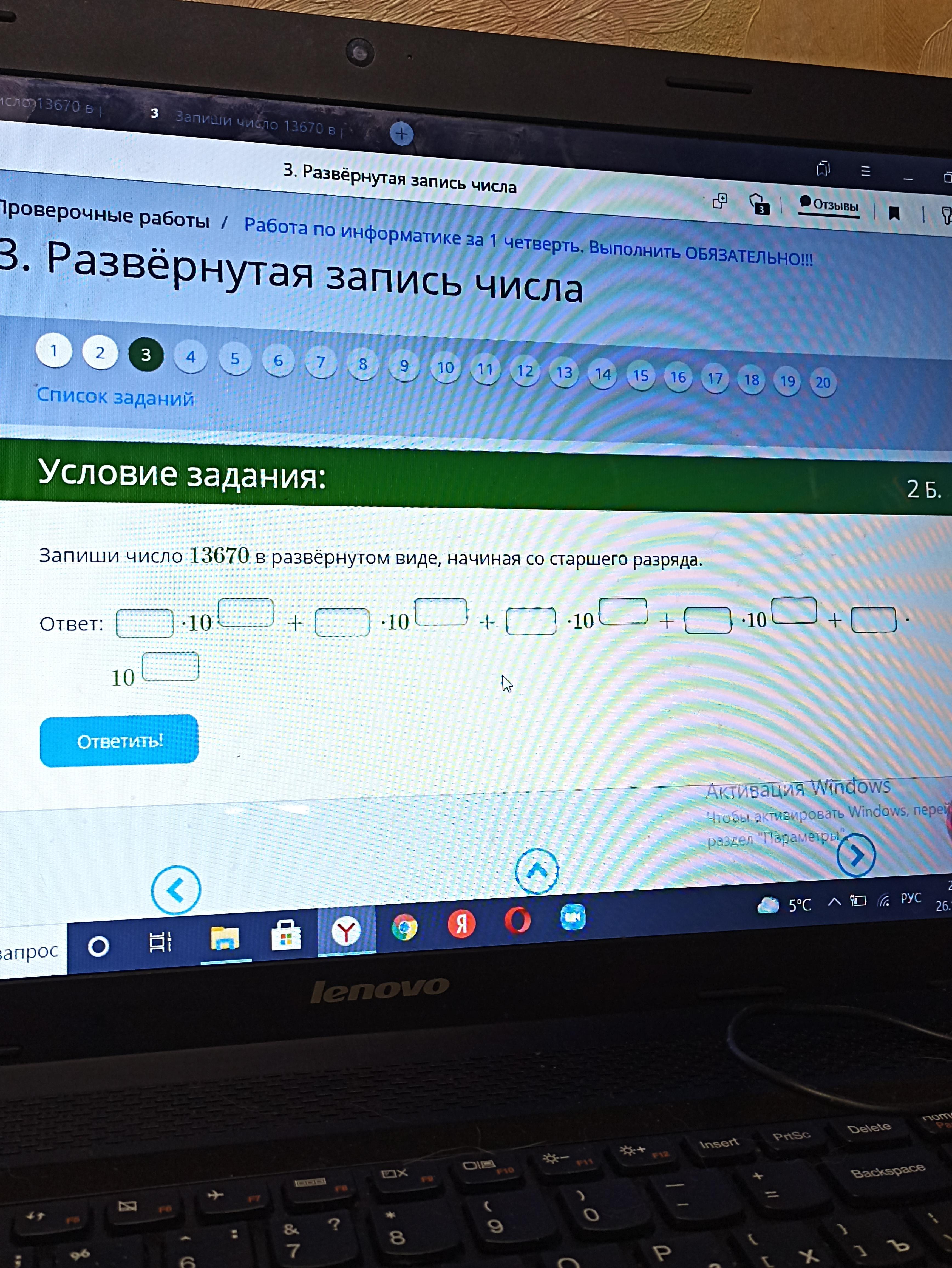 Развернутый вид - сумма произведений цифр числа на основание системы счисления в степени разряда цифры