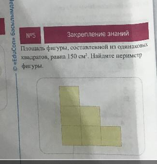 фигура состоит 6 одинаковых квадратов, значит площадь одного квадрата = 150/6=25см²