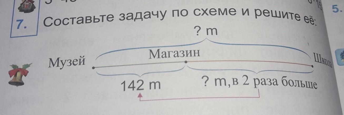 Задача: Дорога из магазина в музей состовляет 142 м, а дорога из магазина в школу в два раза больше. Сколько метров составляет дорога из музея в школу?