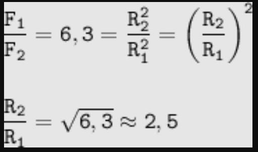 Если R₁ = 6380 км, то R₂ = 6380 · 2,5 = 15950 км