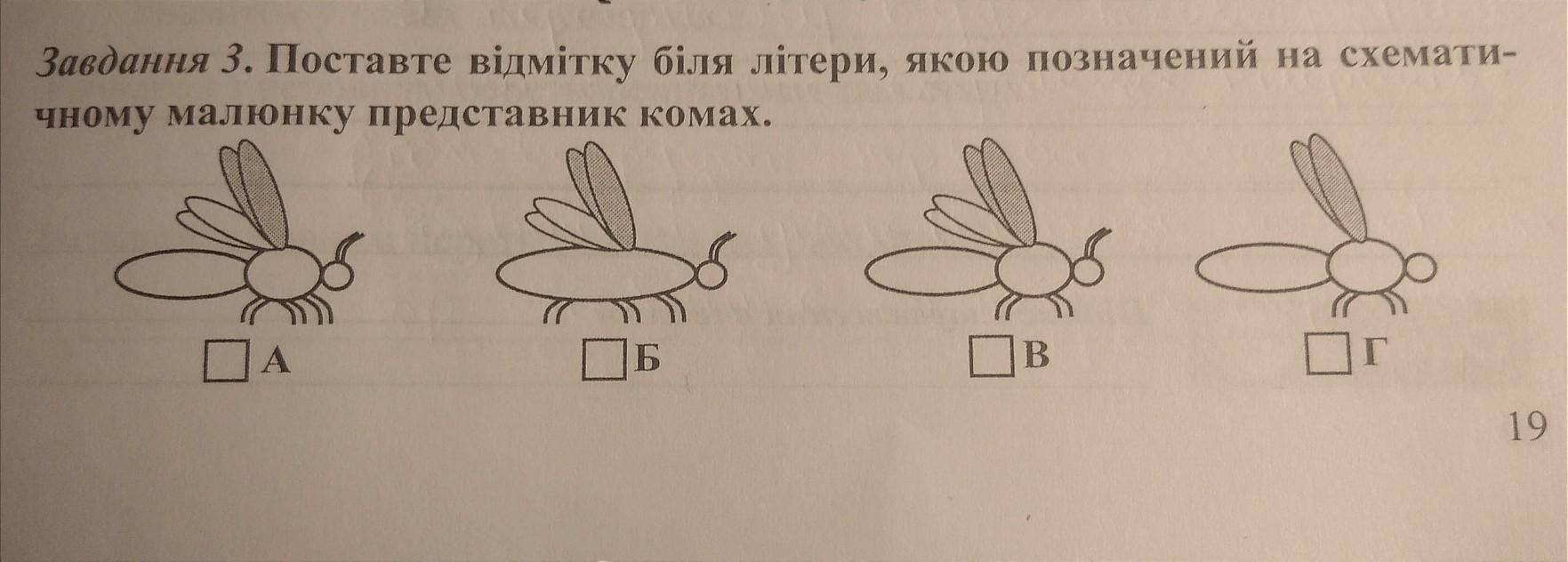 поставте відмітку біля літери, якою позначений на схематичному малюнку представник комах