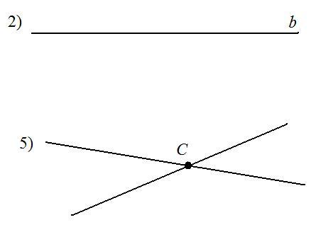 4) на прямой а лежит точка М, т.к. прямая а проходит через точку М;