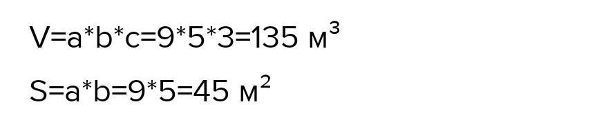 9×5×3=135 (м³)-объём комнате