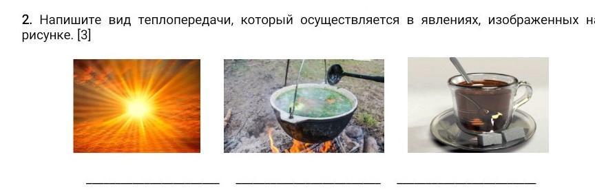 напишите вид теплопередачи, который осуществляется в явлениях, изображенных на рисунке