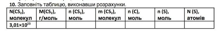 N M n(моль m(г) n(C)моль n(S)моль N(S)атомів