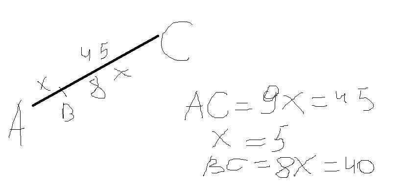 Отсюда х = 5, а ВС = 8 * 5 = 40