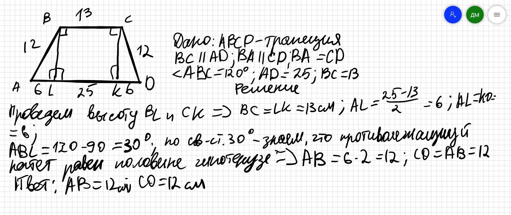 пользуясь свойством углов прямоугольного треугольника: Катет прямоугольного треугольника, лежащий против угла в 30°, равен половине гипотенузы. найдем необходимые стороны