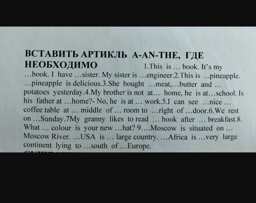 9. Moscow is situated on the Moscow River. The USA is a large country. Africa is a very large continent lying to the south of Europe.
