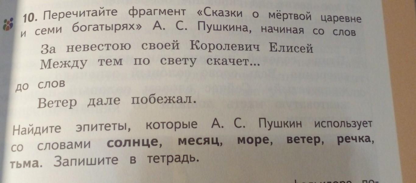 "за невестою своей королевич Елисей между тем по свету скачет нет как нет он горько плачет и кого не сппросит он всем вопрос его мудрен кто в глаза ему смеётся кто скорее отвернётся к красну солнце наконец обратился молодец свет наш солнышко ты ходишь "