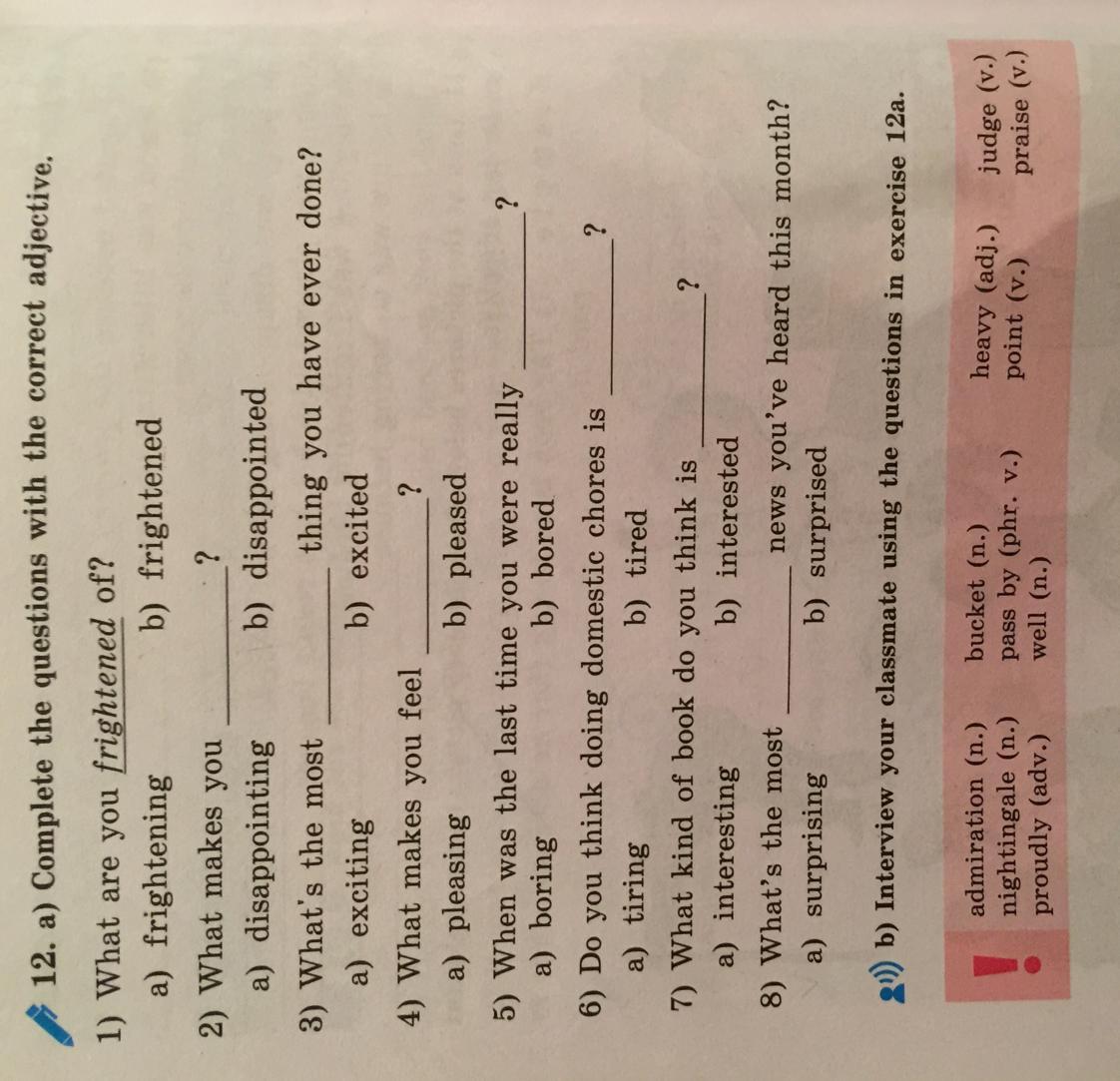 В 12a нужно составить вопросы выбрав один из вариантов. В 12b нужно провести некое интервью с одноклассником брав в основу вопросы из 12a.